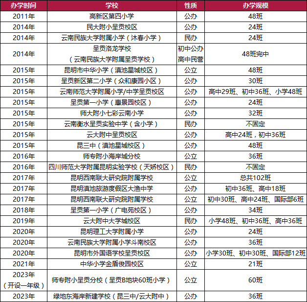 究其原因,昆明新规划的学校多由地产项目配建,呈贡这两年本就没有多少新盘,城市发展也基本成型,新建学校的速度自然也就慢下来了。