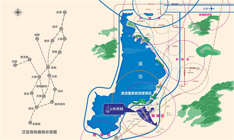 项目就在古滇名城旁边,享有丰富资源配套,古滇艺海大码头,1100亩湿地公园,600亩七彩云南·欢乐世界,养生养老小镇已经运营。