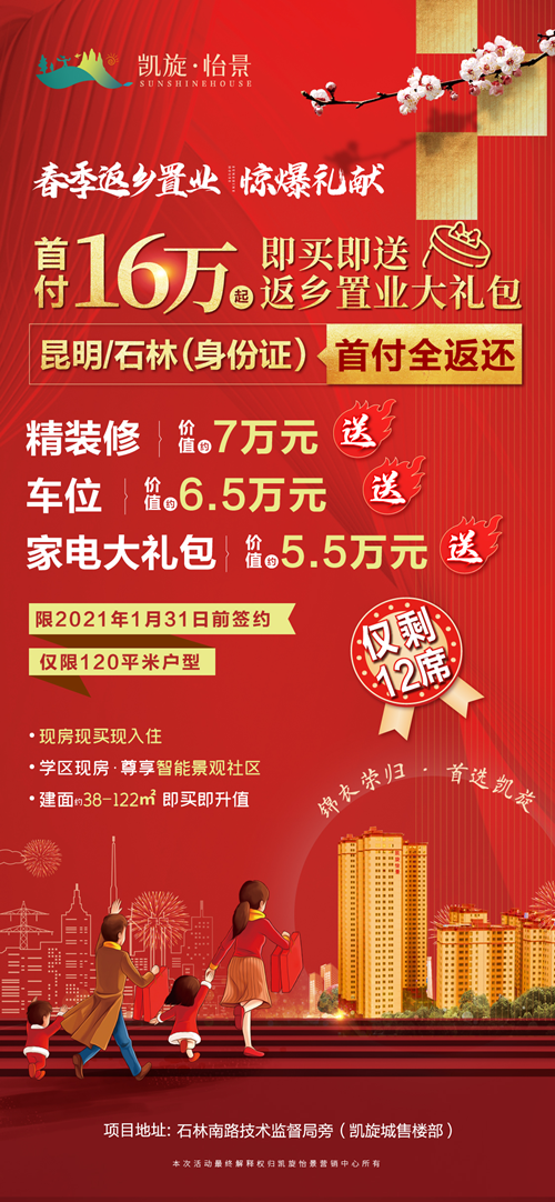 尤其是年底返乡,凯旋怡景开启了“首付全返还”的钜惠活动,买房送全屋装修、车位、家电等,更是划算!
