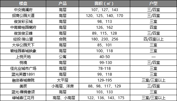 这些项目从户型上来看的话,都是三房及以上的产品,两房产品已然从名单上离场。