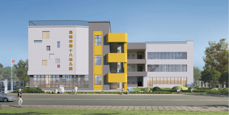 即将投入使用的昆明市第十八幼儿园,装配率达77%,达到了国家AA级装配式标准,成为了云南省首个装配式钢结构建筑幼儿园。校舍按照幼儿园建设标准进行设计和建设,校舍较拆除重建前增加约1570平方米,配置了标准的幼儿活动室及相应的功能用房,是一所全新的标准化幼儿园,为昆明市第十八幼儿园教育集团的成员,将为周边居民提供学前教育学位180个,满足永昌片区适龄幼儿的入园需求。