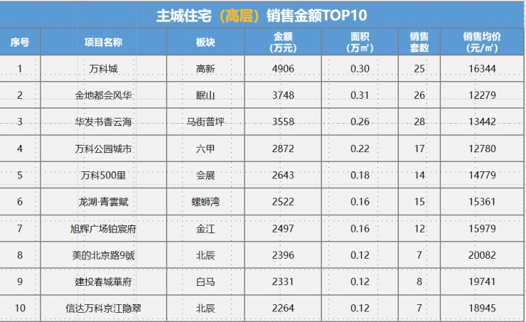 本周住宅成交5.52万㎡,环比上涨94%;主力成交项目为金地都会风华26套,0.31万㎡;万科公园城市24套,0.31万㎡;万科城25套,0.3万㎡ 等。
