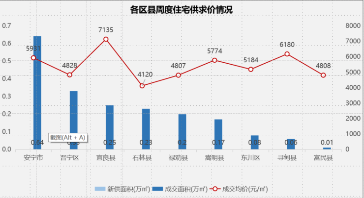 热点郊县:安宁主城成交量小幅上涨,万达中央公园及吾悦广场项目以价换量影响均价下降。太平吾悦海悦西山及万辉星城以价换量,带动成交量大幅回升,同时影响均价下降。晋宁招商及保利项目以价换量带动成交量上涨,部分高价项目带动均价上涨。嵩明成交量回升,得胜空港温泉度假公园及碧桂园天樾以价换量,影响均价下降。