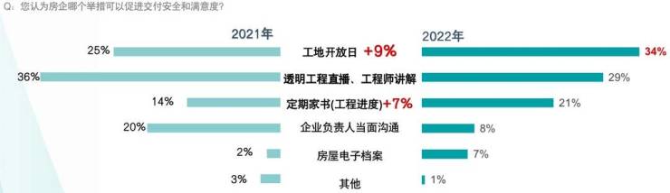根据中指研究院调查,多数房企认为,疫情影响导致项目工期延长是按期交付的最大阻碍。同时,合作方或自身遭遇流动性问题,导致项目进展停滞或停工也是影响因素之一。交付满意度数据降至5年来最低水平,2022年仅69.8分,较2021年下降2.5分,已跌破70分关口。高预期和减配交付、延期交付对交付服务评价产生负面影响。