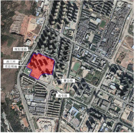 地形地貌分析∶丽阳星城二期A4地块东西长约372米,南北向长约345米;现状主要为已建"烂尾"楼,其中∶包含11栋高层住宅、1栋12班幼儿园、1栋社区配套用房、 1栋配套商业及一层地下室;基地内部地势平整、视野开阔; 适于建设开发。项目地块位于昆明市五华区黑林铺街道。南临海屯路,西临西三环,东临慧谷路,北侧为规划道路。