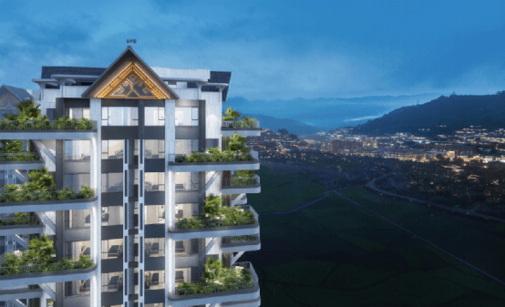 在景观、绿化和营销展示中心设计上,彩虹树项目设计团队请到了“素造建筑”国家一级建造师、云南省住建系统专家库专家杜杰,英国谢菲尔德大学设计硕士董文,意大利都灵理工大学建筑学硕士赵阳等3位归国设计大师,带领近20人的团队,精心打磨项目公共空间的品质,将彩虹树“美学资产”的价值进一步提升。在迭代的空间尺度、建筑的人性体验度、空间舒适度之外,从“傣锦元素”“傣文化”和“建筑美学”“景观与建筑的和谐感官度”等4个层面出发,赋予了彩虹树“时间资产”的全新内涵。