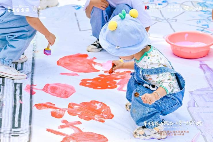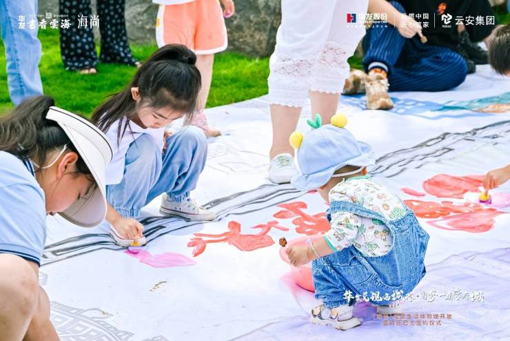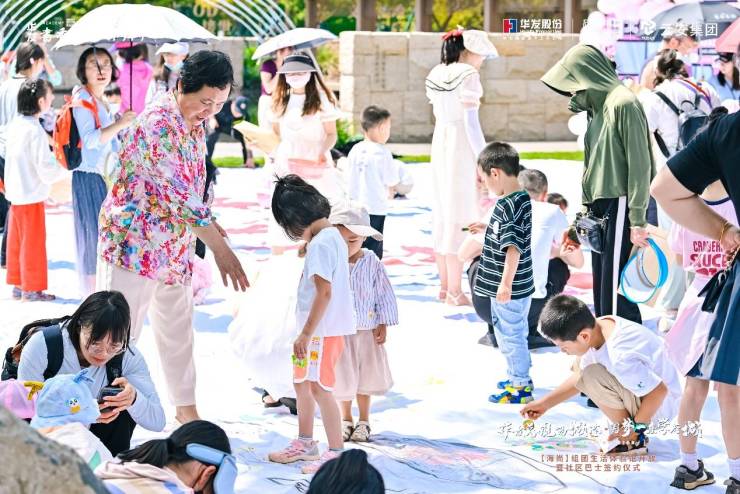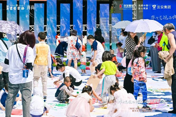 活动现场,千人绘画吸引无数小朋友的参与。数百名小朋友手执画笔,在巨型画布上认真添涂颜色,用自己的小手共同绘制华发书香云海未来美好大城图鉴。随着最后一笔的落下,涂鸦完整清晰的出现在眼前,共同合影留念,以照片形式留下美好纪念。