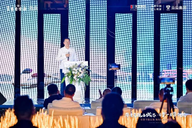首先, 华发股份华南大区昆明公司总经理龚德银先生向来宾们致词。在龚总的致辞中我们了解到:“华发入滇两年,在这两年的时间内项目一直以品质兑现为核心,打造西市区国际山海人文住区。今年,也是华发昆明的品质兑现年。作为华发在昆的百万方大盘,华发以匠意,兑现给城市最好的品质,新组团的推出,进一步展现华发对昆明人人居的诚意。”
