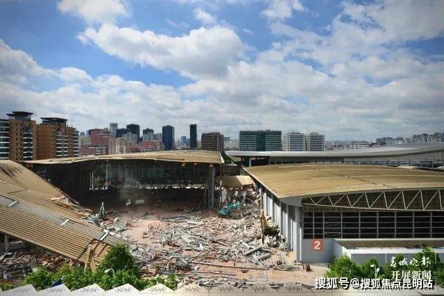 自去年7月昆明市举行2021年储备土地推介会开始,昆明国际会展中心展馆区的命运一直备受关注。今天(5月11日)上午,记者来到昆明国际会展中心看到,展馆区1、2、3、7号馆均开始拆除。