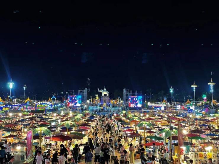 夜晚的告庄星光夜市是亚洲最大的夜市,容纳了约3000个摊位、5000多家商户、250家特色餐饮,集结了云南、泰国、老挝、越南、柬埔寨等各地的创意摊贩。