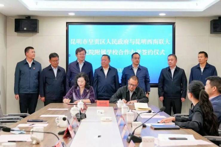 区委编办、区政府办、区教体局、区财政局、吴家营街道、昆明西南联大研究院附属学校、呈贡区实验学校相关负责人等参加签约仪式。