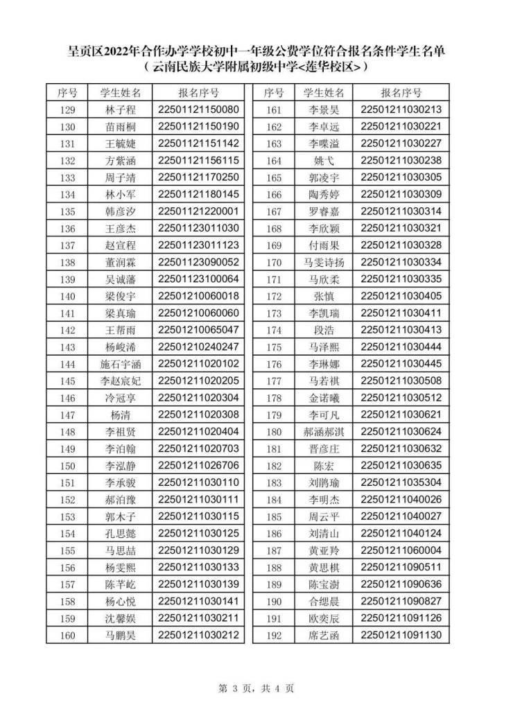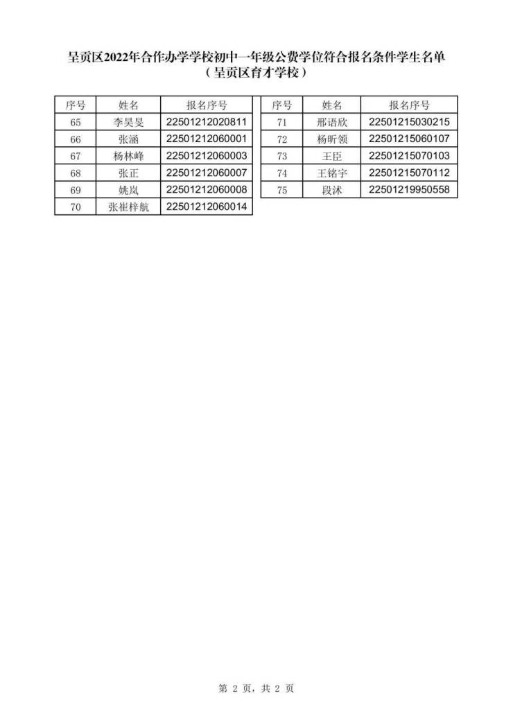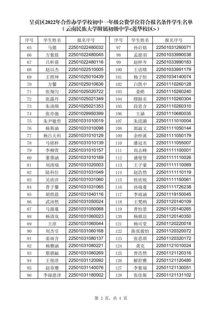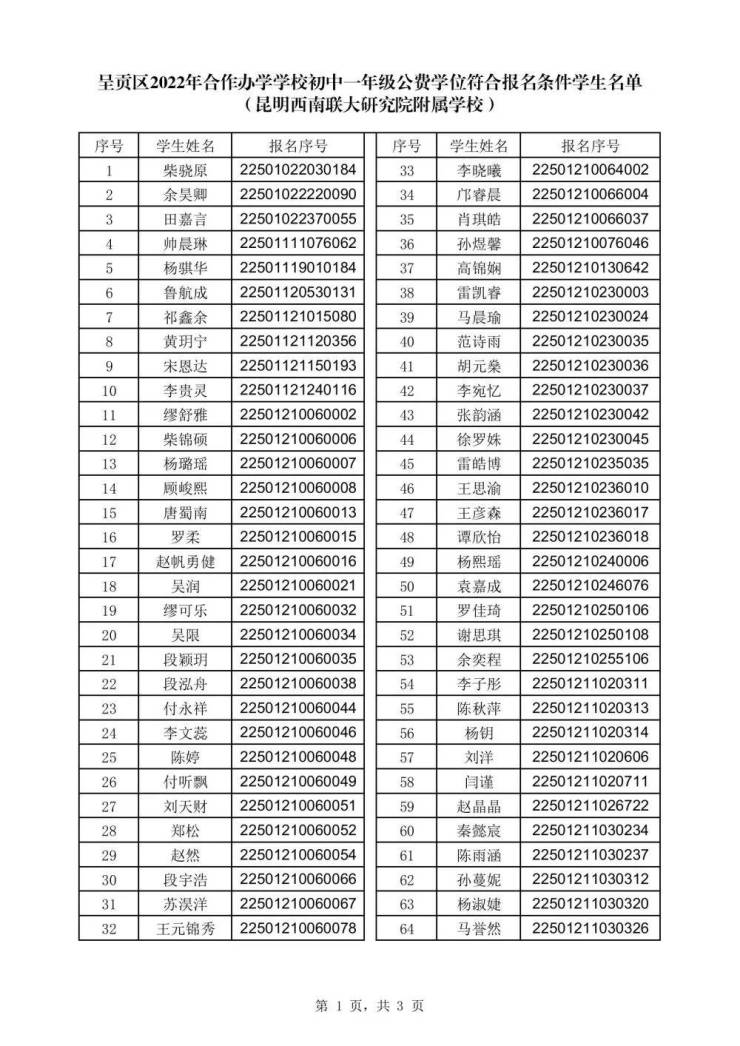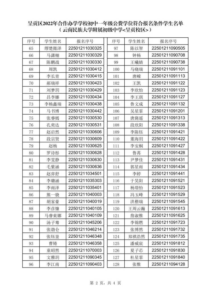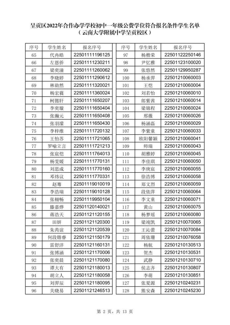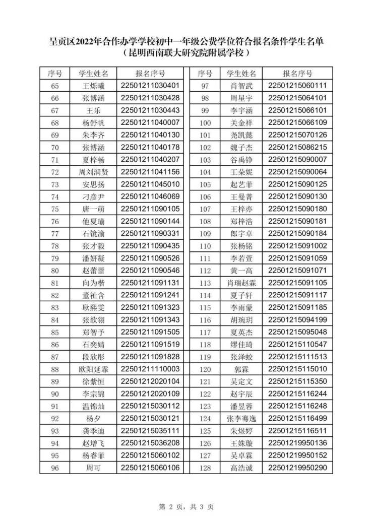 2.呈贡区2022年合作办学学校初中一年级公费学位符合报名条件学生名单