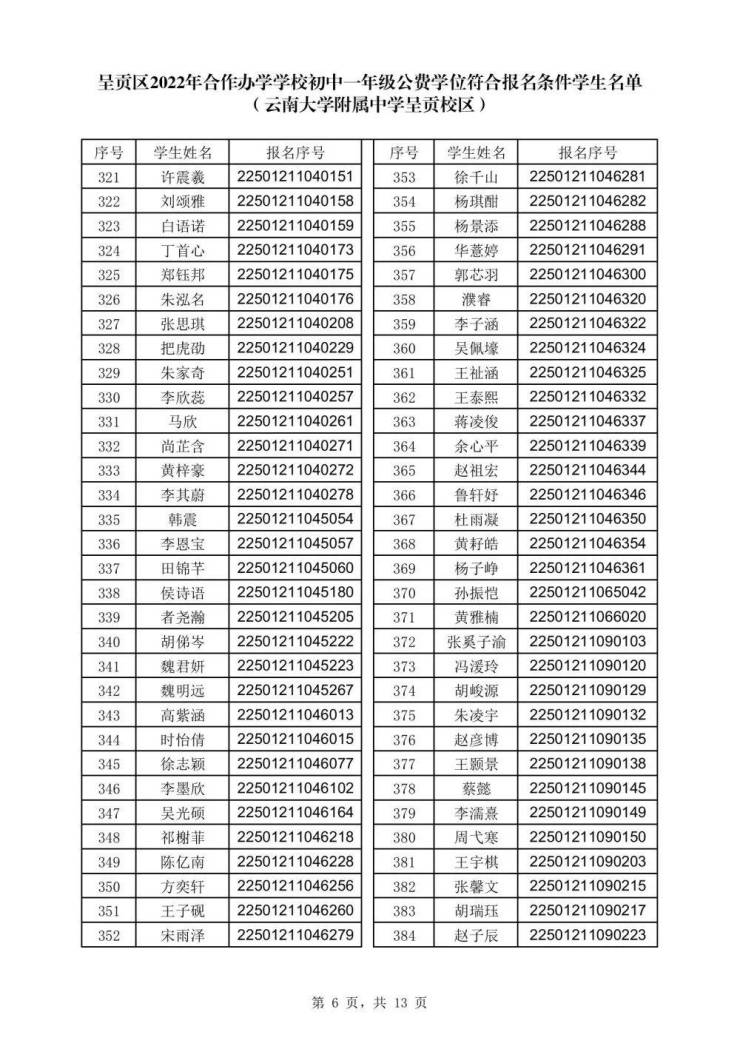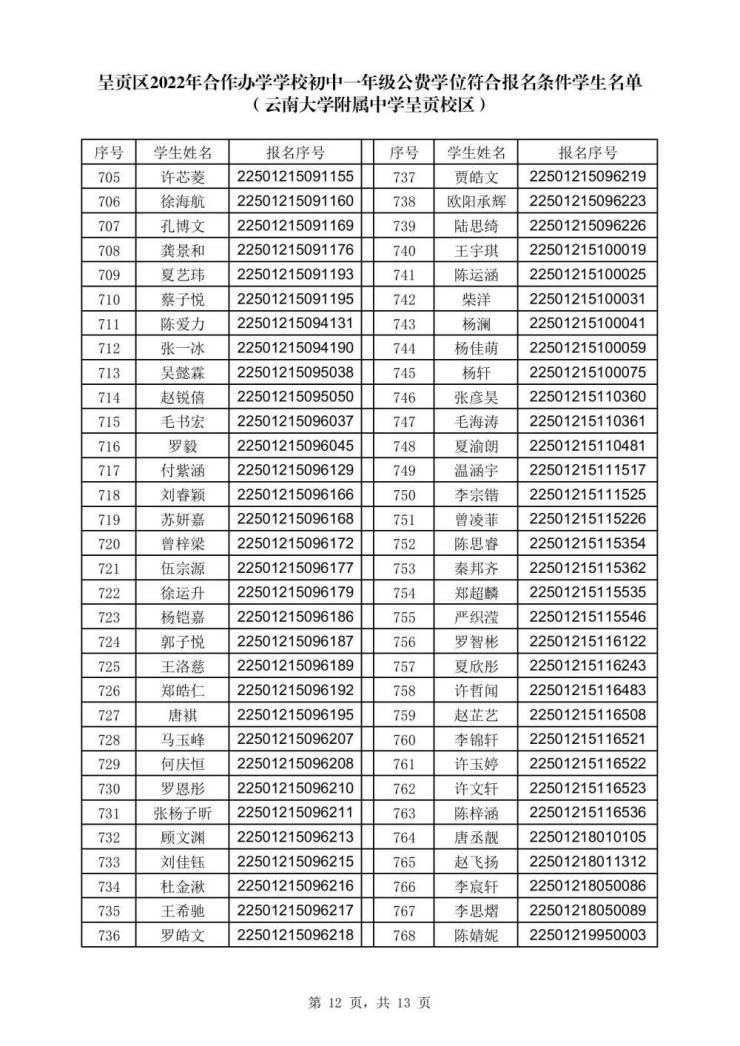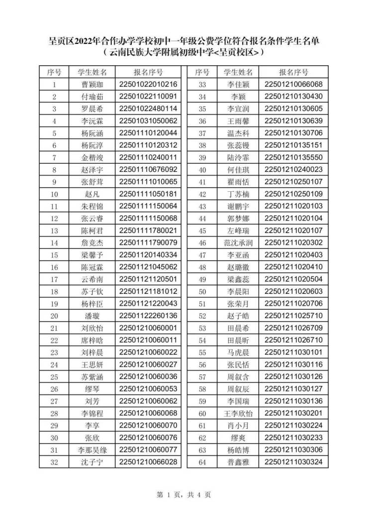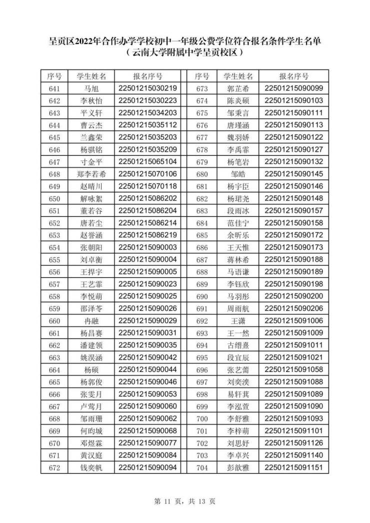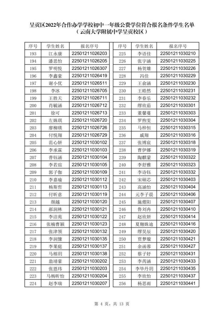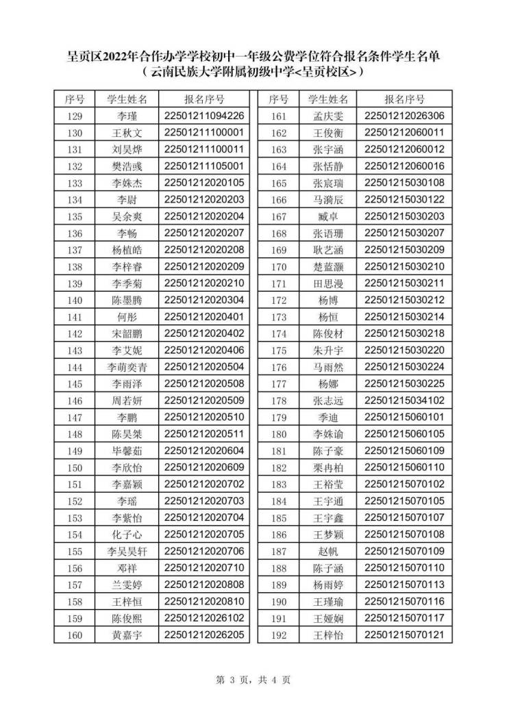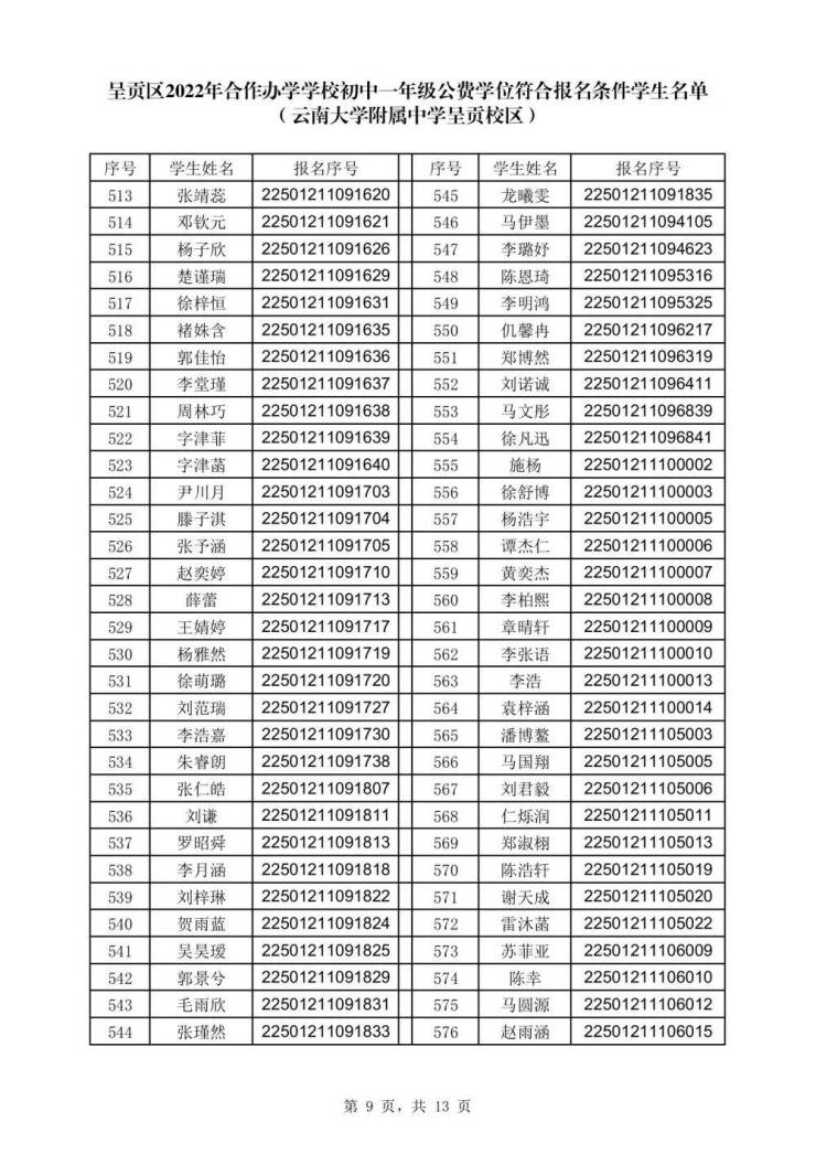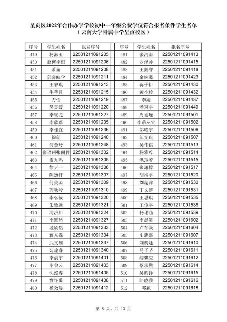 2.呈贡区2022年合作办学学校初中一年级公费学位符合报名条件学生名单