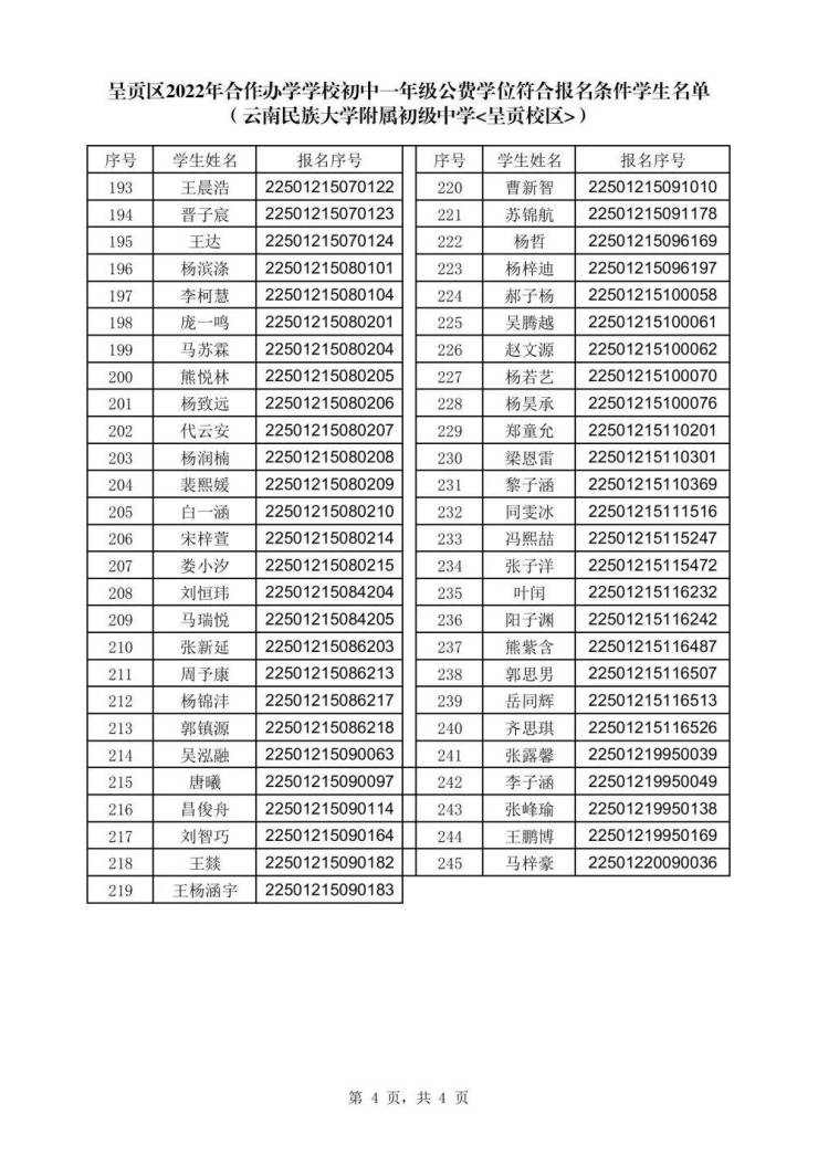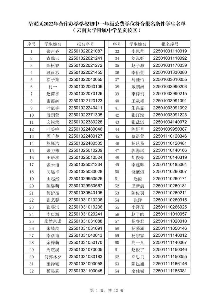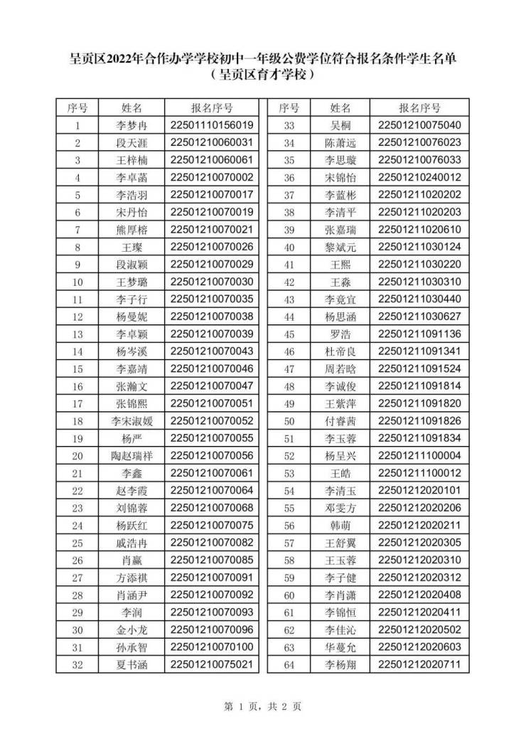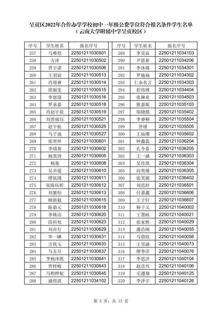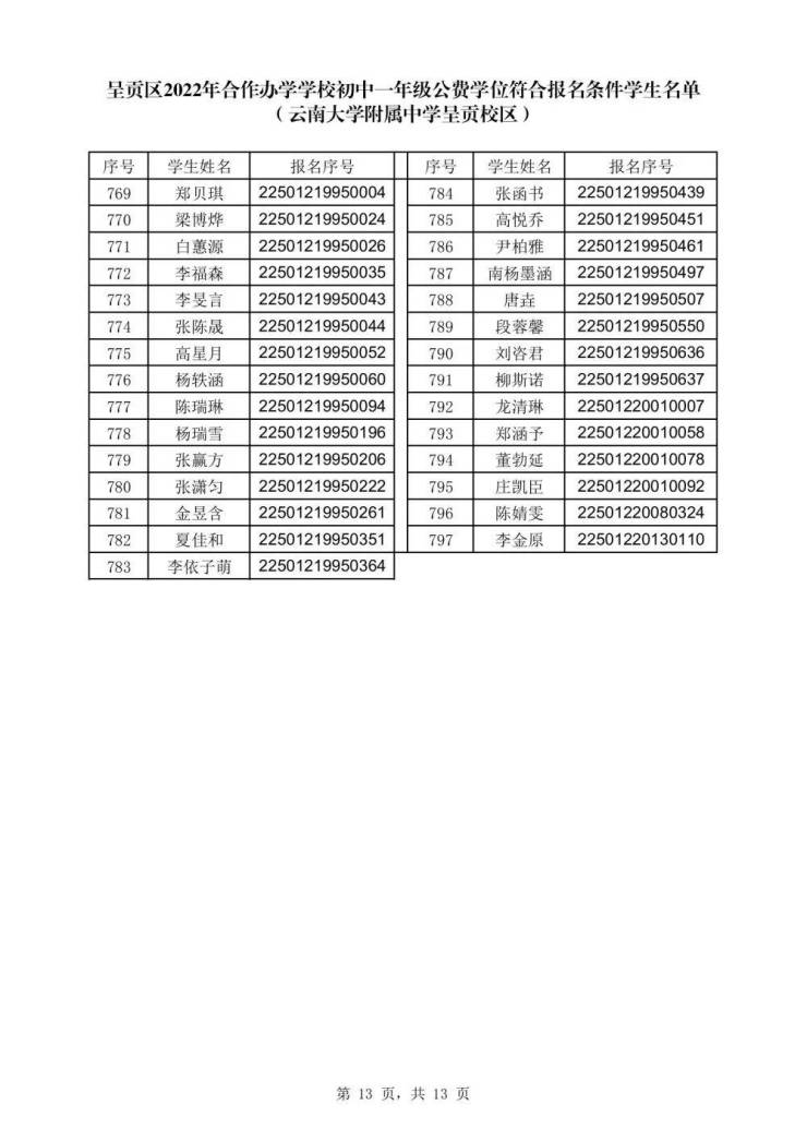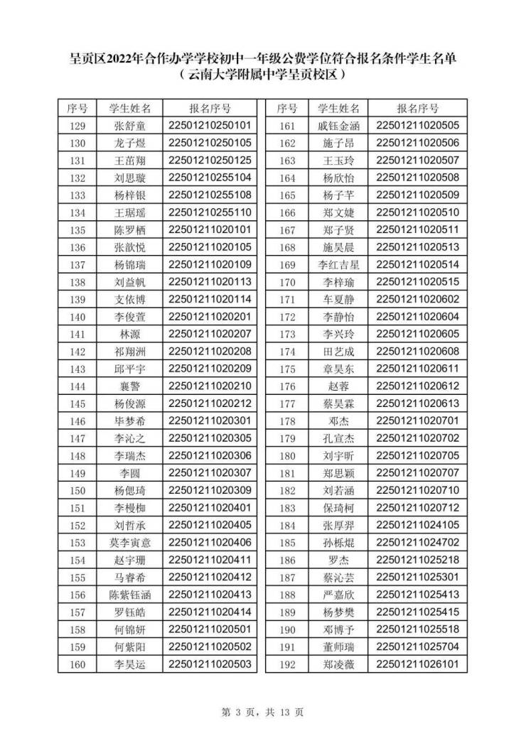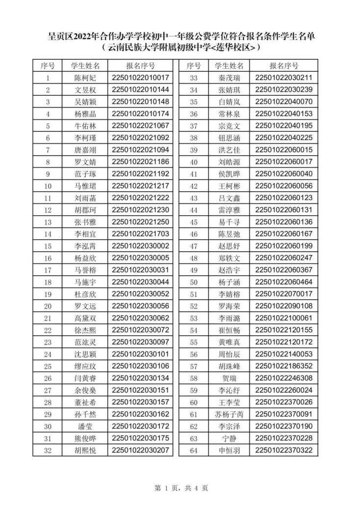 2.呈贡区2022年合作办学学校初中一年级公费学位符合报名条件学生名单