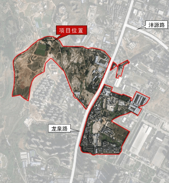 麦溪村城改项目位于盘龙区茨坝街道,龙泉路与沣源路交叉口南侧,西临长虫山,北临蓝龙潭燃气站,东至昆明卷烟厂,南至碧桂园御龙半山小区,总用地面积约1353.89亩。