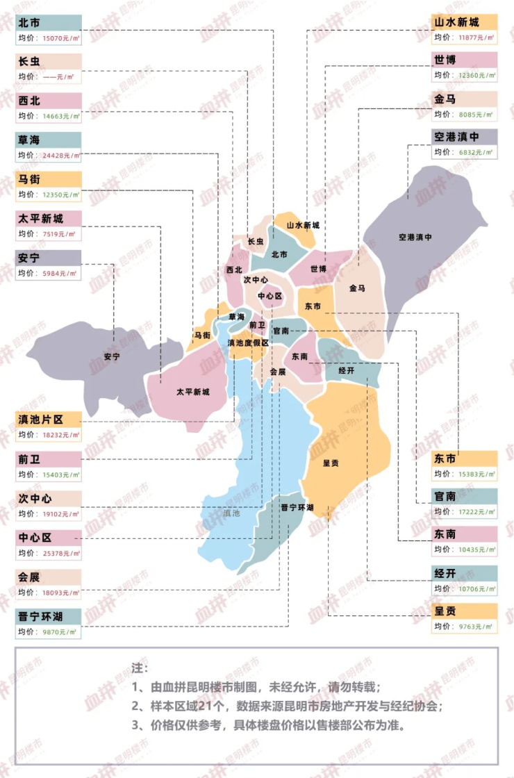 而空港经济区,虽经历了一轮又一轮的发展,如今产业集群还在逐渐成型,配套也在持续补齐,目前房价仅6832元/㎡(6月房价数据,来源昆明房协),仍处于价值洼地期,此时买房,“回头客”将增加,升值空间可观。