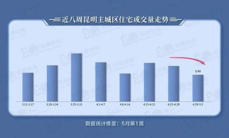 根据上图不难看出,五一假期这一周昆明的成交数据远不及前几周,不过也可能是这部分数据体现的并不是认购数据,而是备案数据,与各大售楼部的数据会有很大出入。但还是能感觉到楼市的形势较为严峻。