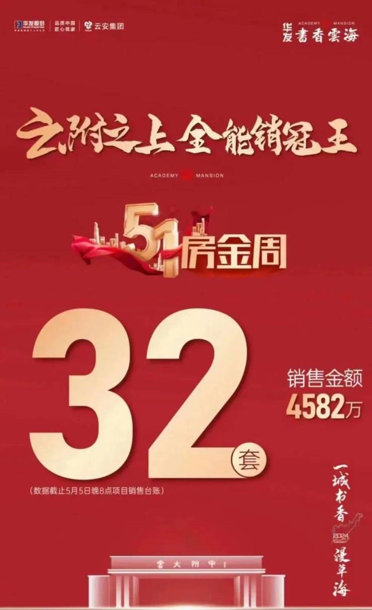 从销售套数来看,万科城销售套数算是比较多的了,共成交了68套;招商蛇口对外宣称云南各盘共卖了43套;中海寰宇天下对外宣称卖了37套;书香云海喜报上宣称五一期间卖了32套,销售金额4582万元。