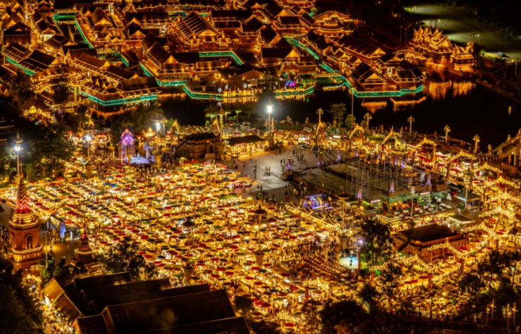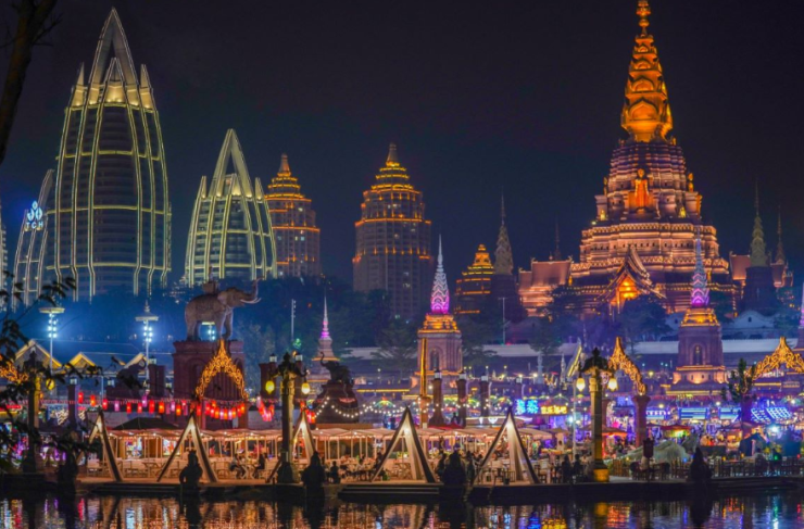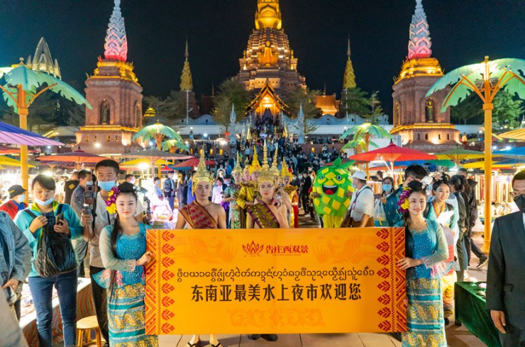 告庄西双景景区内就有近千家特色业态以及自创IP湄公河·星光夜市、星光旅拍、湄公河人家综合体(湄公河景兰大酒店)等,更有泼水节、傣泐文化节、水灯节、柠檬音乐季、景喜节等各种文化节日活动。