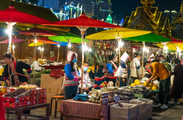 西双版纳“醉”美夜市——湄公河·星光夜市,是大金三角区域大规模、独具特色的夜市。这里融合东南亚饮食、人文、民俗工艺及特色“夜市”文化,如今已成为告庄西双景的一大专属明星品牌,来西双版纳旅游的体验的项目之一。