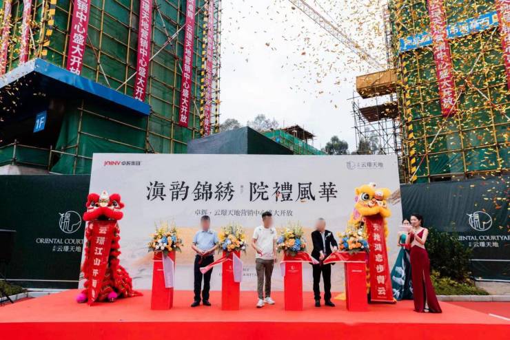 领导们在彩带飞舞、礼炮齐鸣中齐举金剪,为卓辉·云璟天地营销中心的盛大开放剪彩,将整个仪式氛围推上了高潮。大幕缓缓上升,营销中心出现在众人面前。营销中心整体设计简约大气,以新中式设计为理念,将现代元素和传统元素进行高度融合,独具魅力的东方神韵散发在每一个角落。