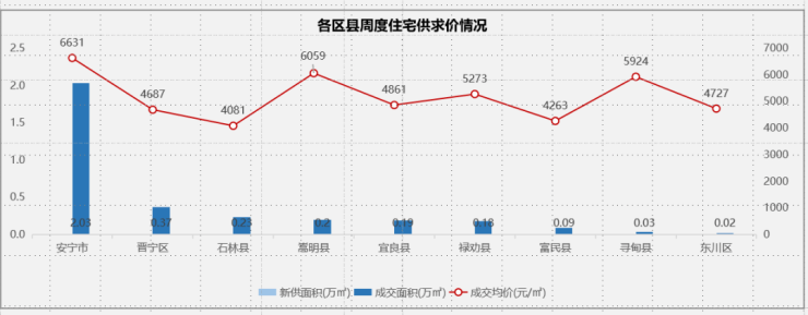 热点郊县:安宁主城创佳城项目持续集中备案,本周成交量及均价上涨;太平量升价跌;晋宁区因烂尾项目低价集中备案,成交量及均价下降;嵩明仅3项目备案,成交量上涨,均价下跌。