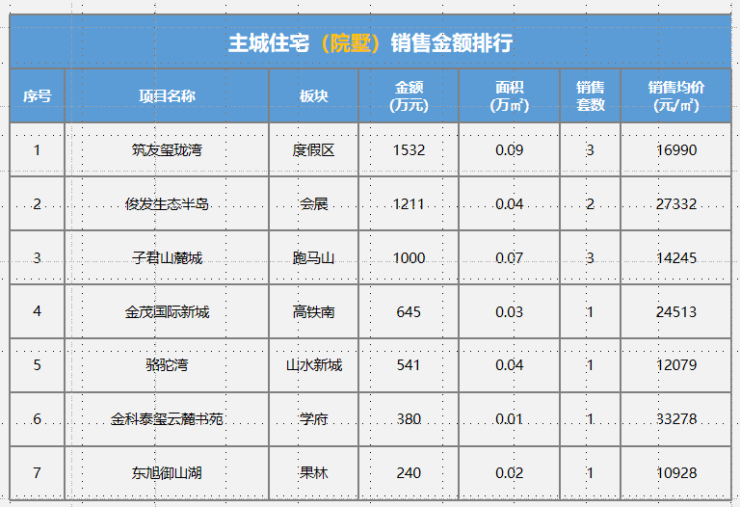 本周住宅成交4.49万㎡,环比下降12%。主力成交项目为筑友双河湾15套,0.19万㎡;华发书香云海14套,0.15万㎡;恒大云报华府15套,0.15万㎡等;
