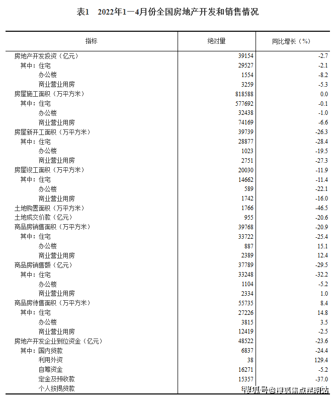 2022年1-4月份全国房地产开发投资下降2.7%
