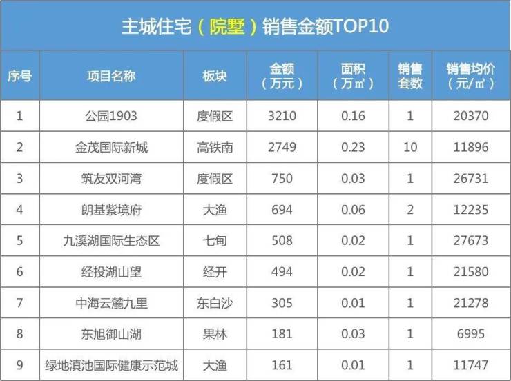 昆明主城住宅成交TOP排行(院墅)