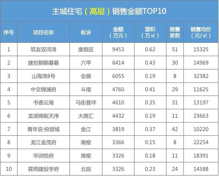 昆明主城住宅成交TOP排行(高层)