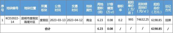 本周1宗土地供应公告。地块位于海埂片区,6.23亩纯商业用地。