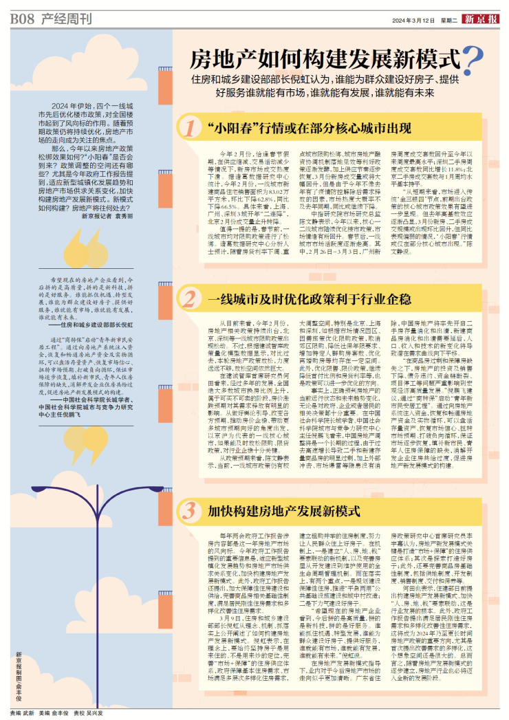 新京报2024年3月12日产经周刊《一线楼市模式“探新”》。