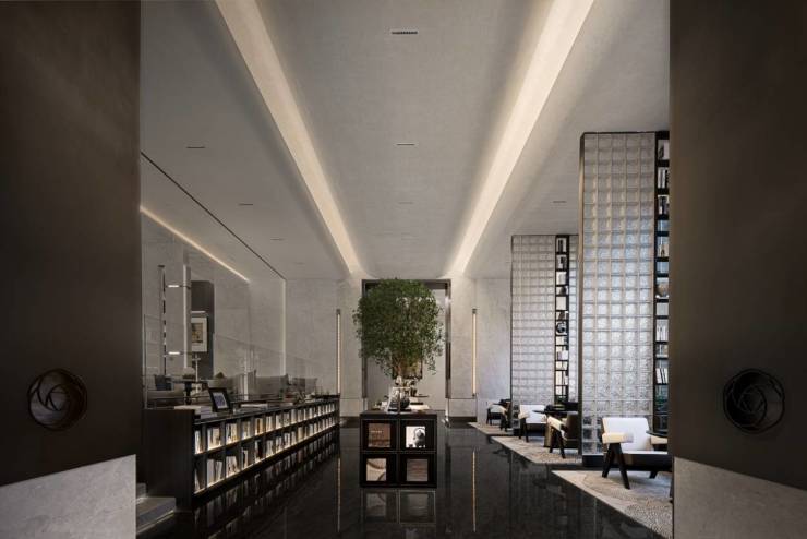 除了软件服务,在硬件方面,锦粼天曜高定了一座下沉式琉光会所,搭配五大会所功能:方圆书吧、静谧水吧、健身私域、会客领域、星河影院,为业主提供多元内容交付的社交休闲场所。