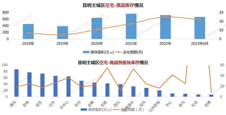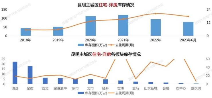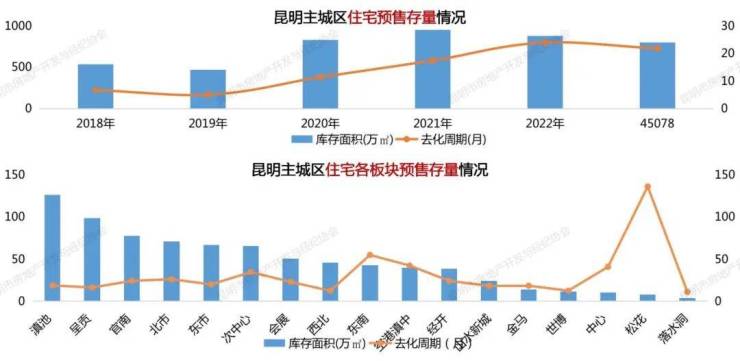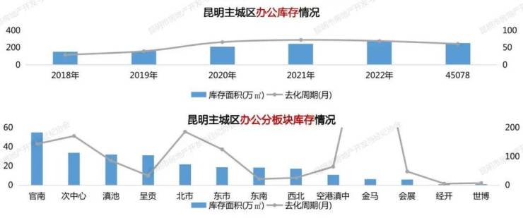 存量80万㎡,需18个月去化;存量集中在滇池和呈贡板块;后期将处于持续去库存状态。