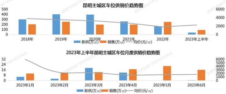 2023年上半年车位供应40万㎡,同比下降46%;成交90万㎡,同比下降28%;成交均价2290元/㎡,同比上涨17%