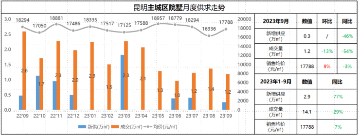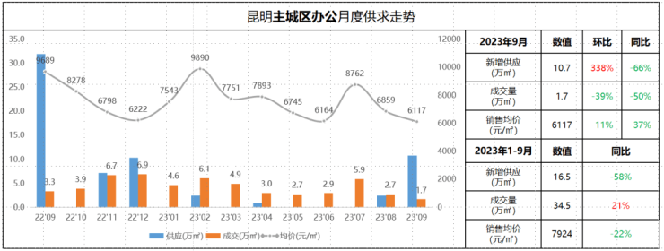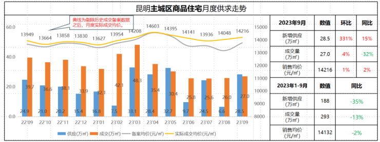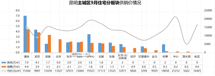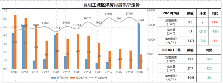 昆明9月成交量环比上升6%,成交价环比回升1%
