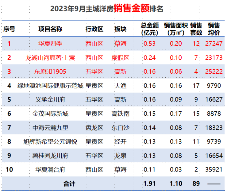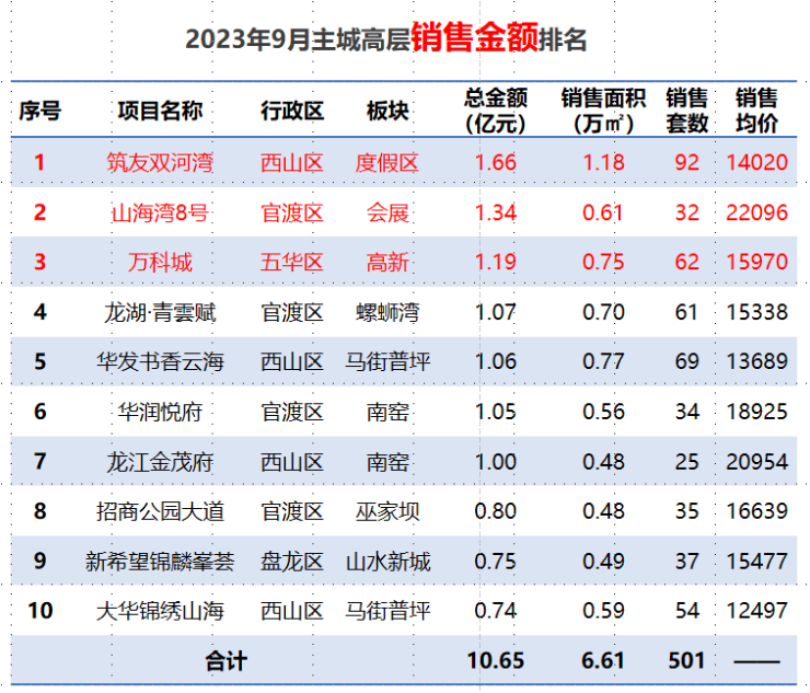 本月郊县住宅成交环比下降26%;主力成交项目七彩云南古滇名城4.61万㎡、海伦堡晋云府1.69万㎡、安宁吾悦广场1.02万㎡等;