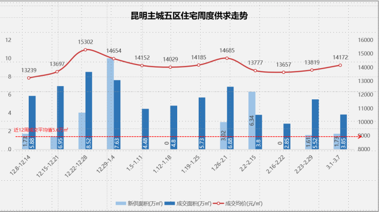自2月20日央行公布最新房贷利率以来,昆明楼市逐步回温。3月1日-3月7日,昆明主城五区住宅成交量环比上涨3%。
