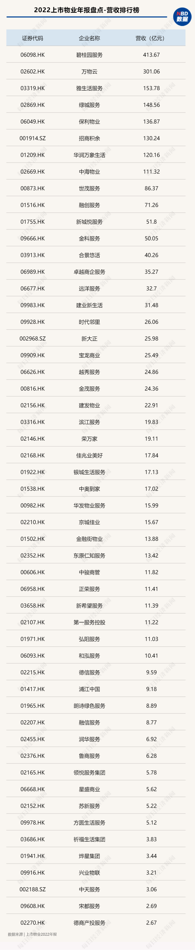《每日经济新闻》记者对目前已发布2022年报的53家上市物企进行统计发现,这53家物企总营收达2371.95亿元,平均营收为44.75亿元,其中41家物企营收低于行业均值。