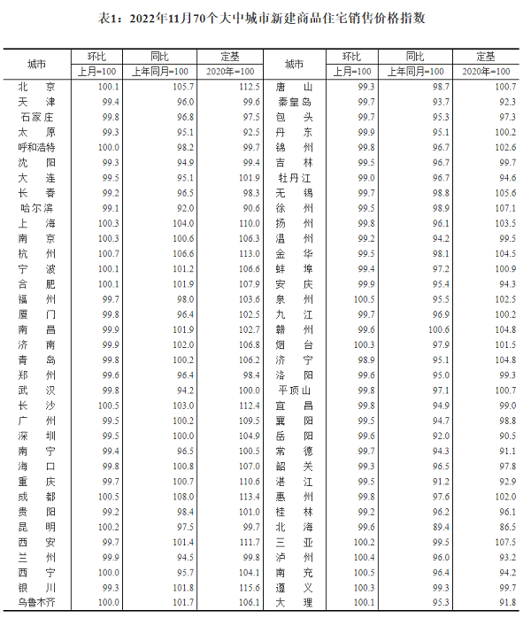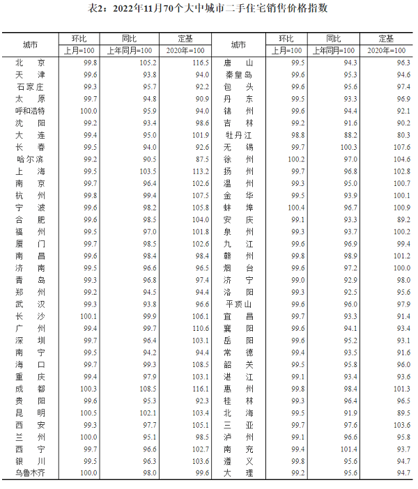 中国经济网北京12月15日讯(记者 李方) 国家统计局今日公布2022年11月份商品住宅销售价格变动情况统计数据。11月份,70个大中城市中,新建商品住宅、二手住宅销售价格环比下降城市分别有51个、62个。