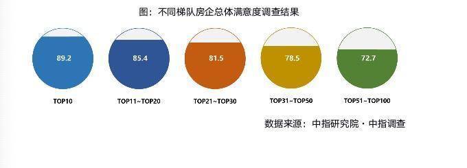 报告显示,TOP51-100房企的满意度为72.7分,TOP31-50房企的满意度为78.5分,而TOP30以内各层级房企的满意度均高于80分。TOP10房企的满意度达到历史高值的89.2分,优势明显,比行业整体平均值高16.9分。