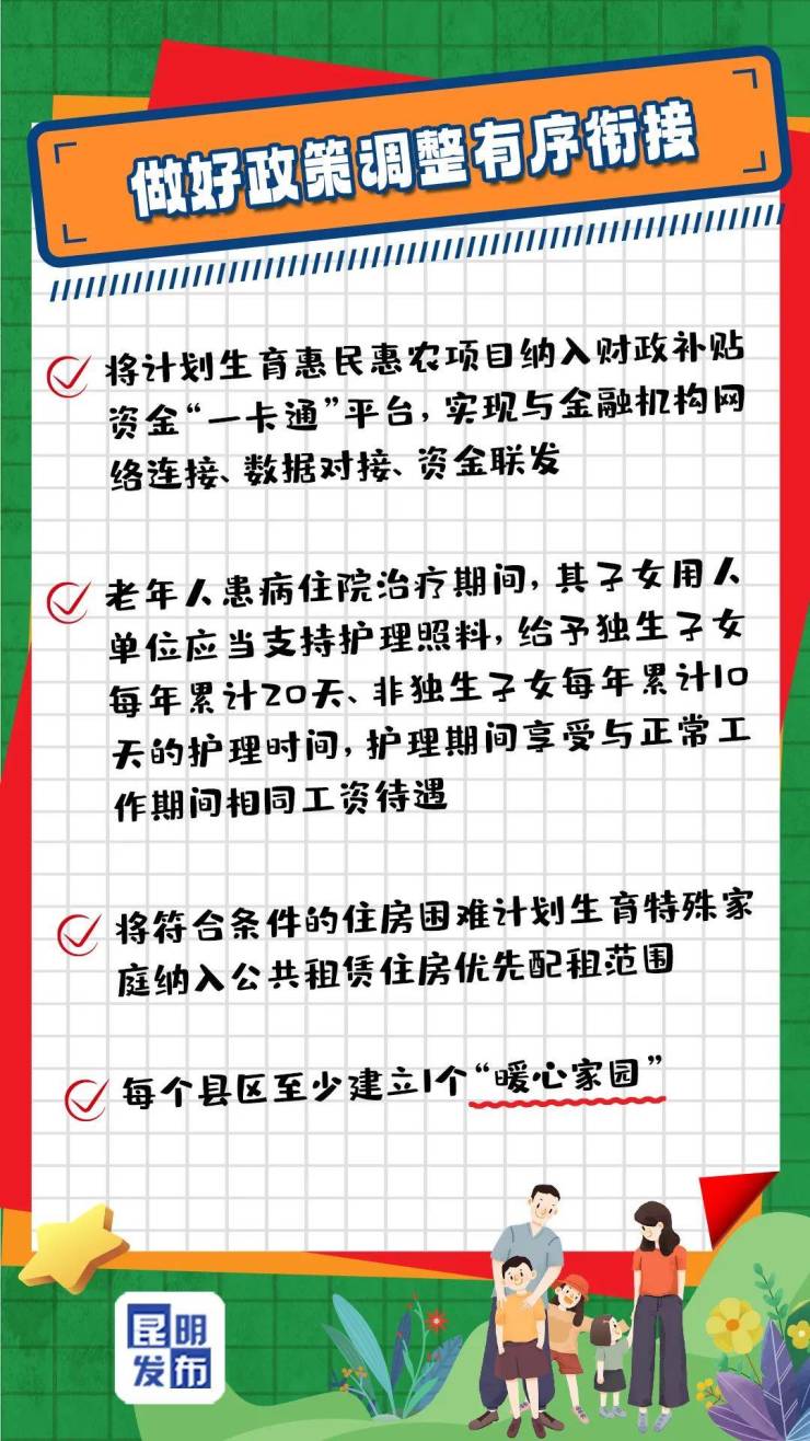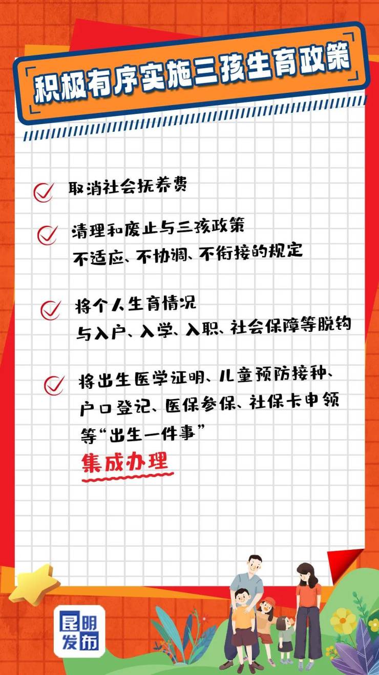 综合评估昆明人口发展形势、工作基础和政策实施风险,取消社会抚养费,清理和废止与三孩政策不适应、不协调、不衔接的规定。