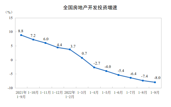 国家统计局:1—9月份全国房地产开发投资同比下降8.0%