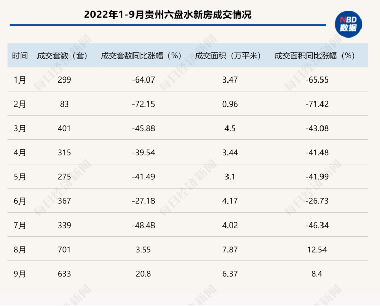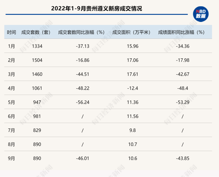 相比省会贵阳,贵州其他城市的房地产市场去化情况同样不理想。以六盘水为例,中指研究院数据显示,今年前9月该市新建商品住宅销售套数仅3413套,同比下降37.3%;成交面积37.9万平方米,同比下降39.72%;遵义前9月成交套数为9896套,成交面积92.25万平方米,同比下降明显。