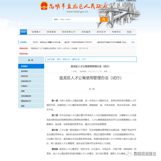近日,盘龙区政府发布《盘龙区人才公寓使用管理办法(试行)》(以下简称《办法》),为高层次以及中高层次人才提供过渡性住房支持。