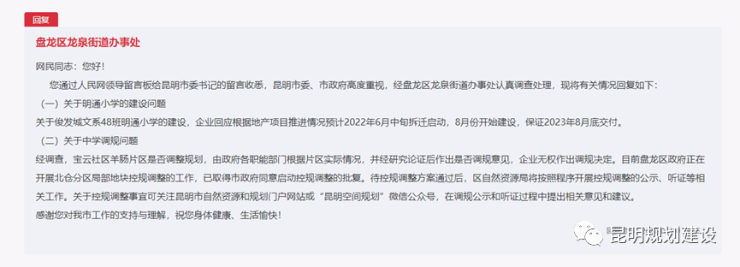 来源:“昆明规划建设”微信公众号、人民网-领导留言板等