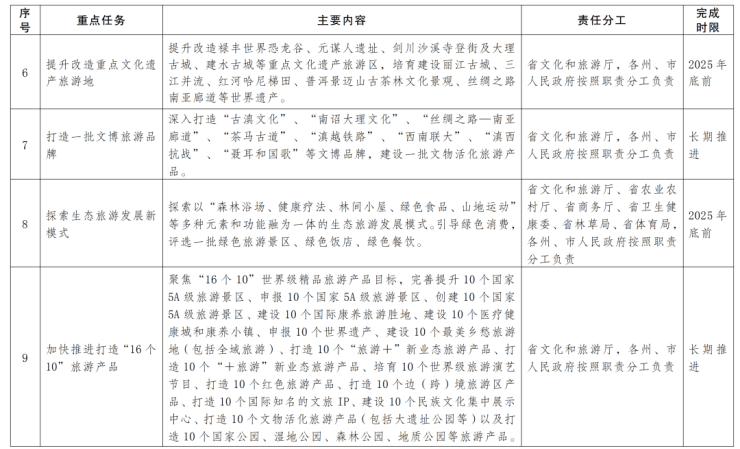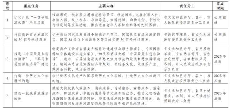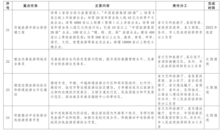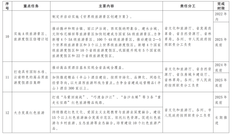 附件:云南省“十四五”旅游业发展实施方案重点任务清单