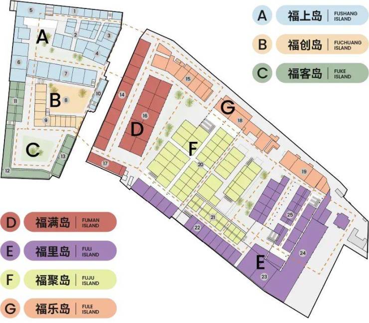 福聚岛将以趣享磁场和创客之家为主题,打造潮玩之家、新中式定制、人宠生活方式集合店以及青旅、社交空间等。