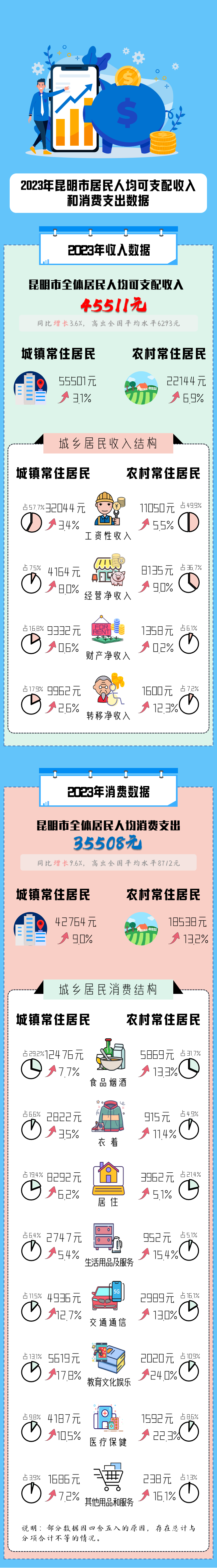 【数据发布】2023年昆明市人均可支配收入和消费支出数据
