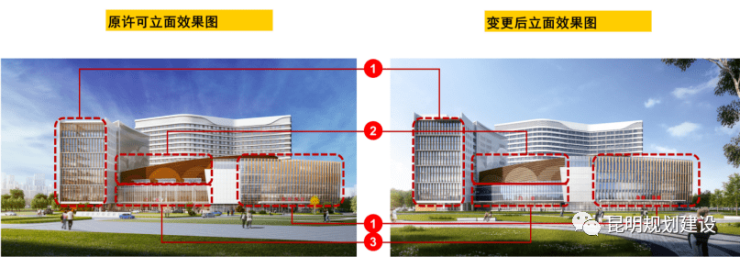 公卫楼:公卫楼层数由4层改为3层,1层层高由5米更改为5.4米,建筑高度由20.95米调整为16.7米;建筑面积由3835平方米调整为2738. 4平方米,减少1096.6平方米,建筑外立面将玻璃幕墙调整为条形窗。